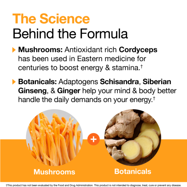 This mushroom+botanical blend features Cordyceps (Cordyceps militaris), a mushroom used in Eastern Medicine for centuries to support energy and stamina.†