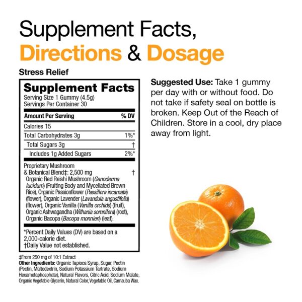 Stress Relief Mushroom Extract is a medicinal blend of mushroom and botanical extracts that has a pleasant, slightly sweet taste, flavored with a hint of lavender and vanilla. Stress Relief Mushroom Gummies are formulated with the same medicinal mushroom+botanical blend as our organic extract, with a natural citrus flavor.